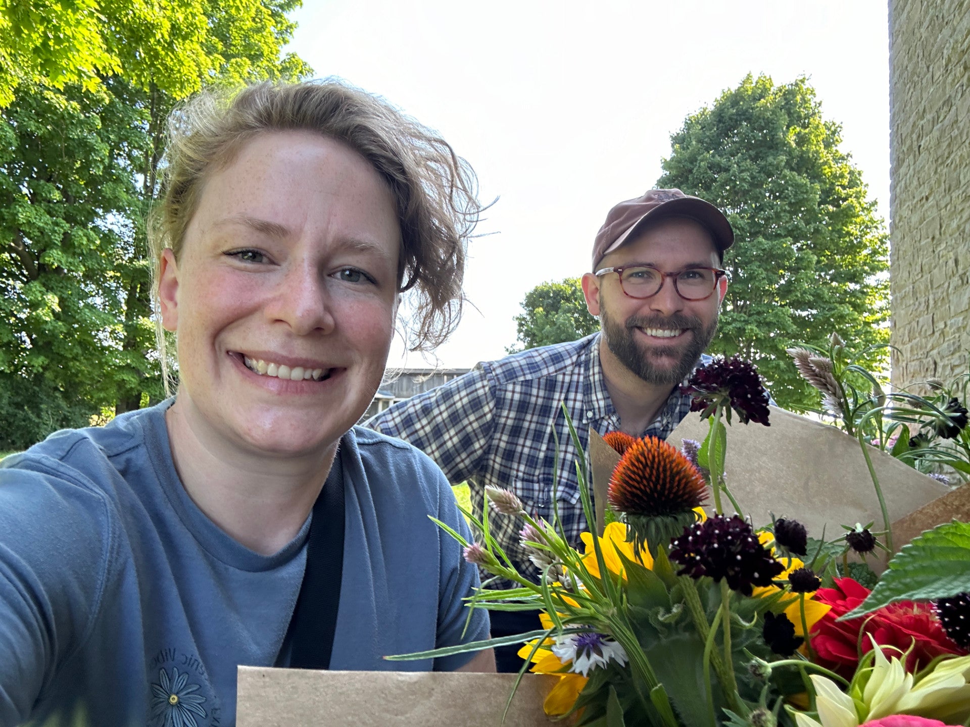 The farm and business are run by us, Allie and Galen (hi!). We've been dabbling in farming for over a decade, and have finally made our dream of starting our own farm come true. Growing for climate and biodiversity, while cultivating beauty, are our north stars. Allie is the main grower, harvester, lawn mower, purchaser of seeds, and arranger of our flowers. If you’ve enjoyed a bouquet, it was Allie who made it. Galen is the main communicator, customer service rep, purchaser of equipment and supplies, bouquet model, and tech guy here.